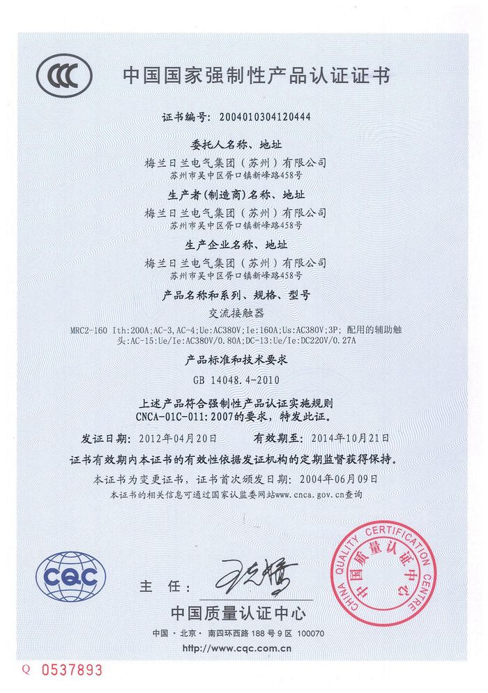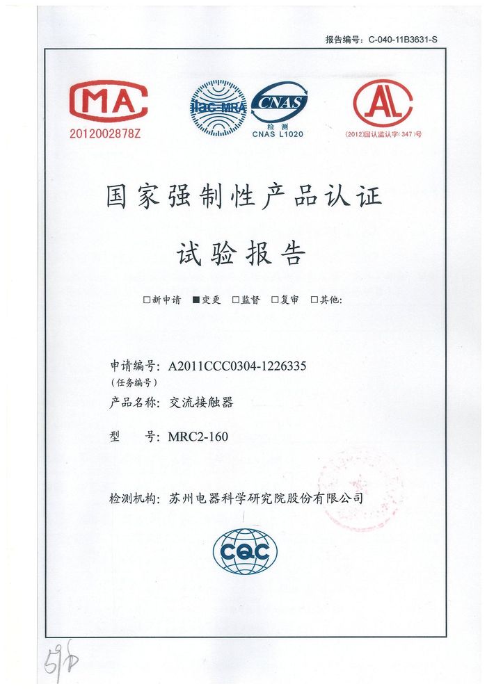 MRC2-160交流資質(zhì)證書(shū)