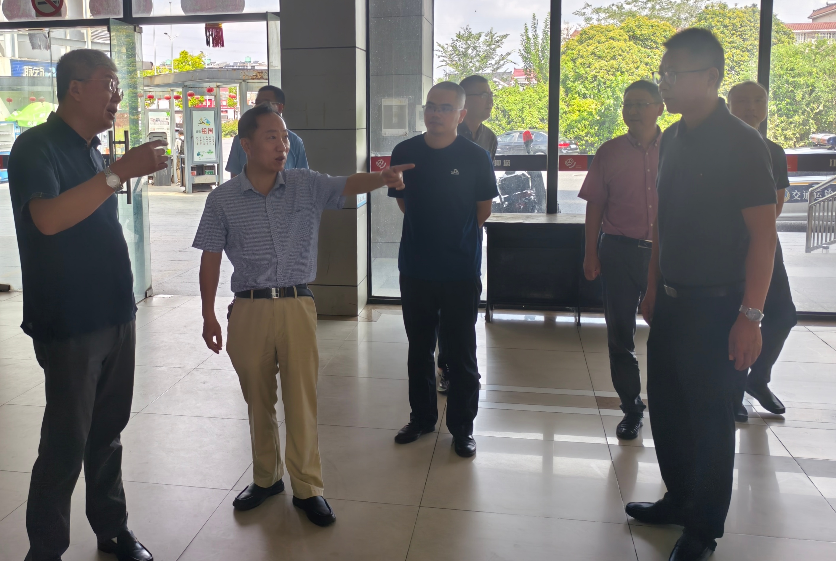 隨著國慶、中秋“雙節(jié)”臨近,為切實(shí)保障旅客出行安全與便捷,9月23日,揚(yáng)州市交通局黨委委員張岳斌帶隊赴升級改造后的江都汽車客運(yùn)站“便捷站”,開展節(jié)前安全檢查。江都區(qū)交通局及江都汽車客運(yùn)站相關(guān)負(fù)責(zé)人陪同檢查。