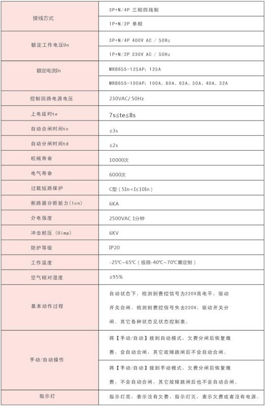 MRB65S-100AP電能表外置斷路器具有短路過(guò)載保護(hù),通過(guò)對(duì)電表控制信號(hào)的檢測(cè)進(jìn)行 自動(dòng)控制接通或斷開(kāi)負(fù)載,實(shí)現(xiàn)欠費(fèi)分閘,付費(fèi)合閘的自動(dòng)控制。符臺(tái)國(guó)家電網(wǎng)《電能表 外置斷路器技術(shù)規(guī)范》以及GB10963.1家用及類(lèi)似場(chǎng)所用過(guò)電流保護(hù)斷路器的標(biāo)準(zhǔn)要求。