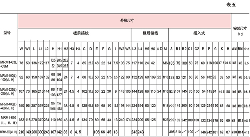 MRMl-225為100、125、140、160、180、200、225A七級(jí);MRMl-400為225、250、