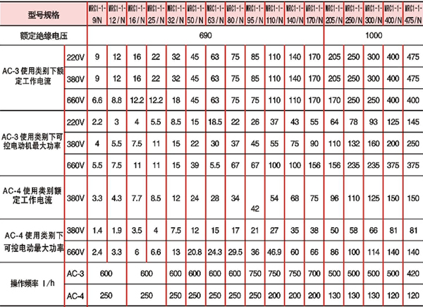 注:1.AC-3使用類別典型用途舉例:籠型感應(yīng)電動機的起動、運轉(zhuǎn)中分斷。