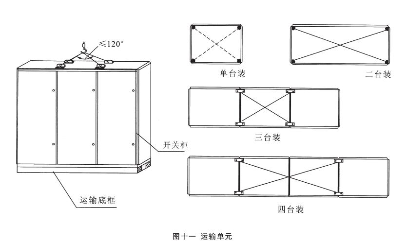 運(yùn)輸單元:產(chǎn)品分四種規(guī)格的運(yùn)輸單元:單臺(tái)裝、二臺(tái)裝、三臺(tái)裝和四臺(tái)裝。但總長(zhǎng)度不得超過3m,見圖十一。